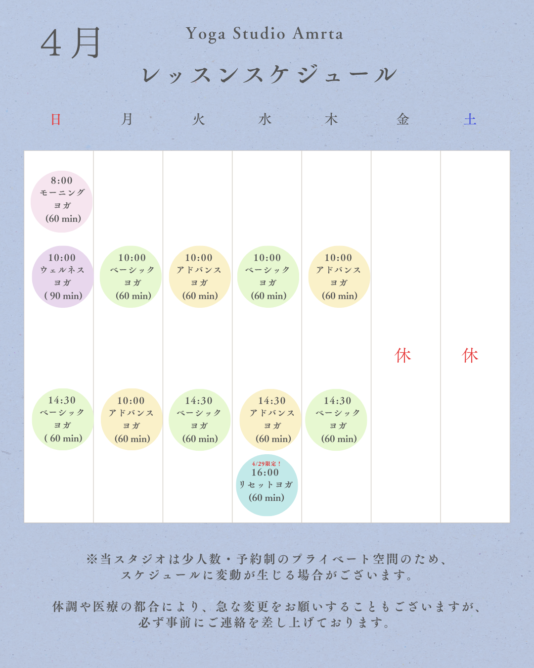 🌿4月 Amrta 1st Anniversary 🌿 🌿静かな夕方のためのリセットヨガ 🌿